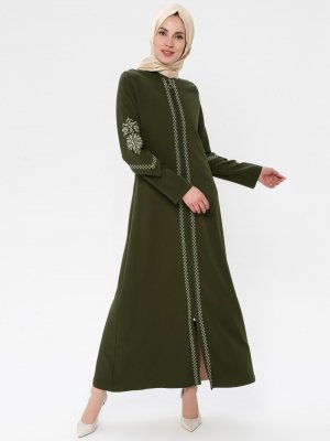 BÜRÜN Haki Etnik İşlemeli Ferace
