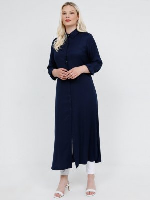 Alia Lacivert Doğal Kumaşlı Gizli Düğmeli Tunik
