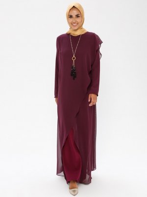 MEKSİLA Mürdüm Kolyeli Tulum Elbise