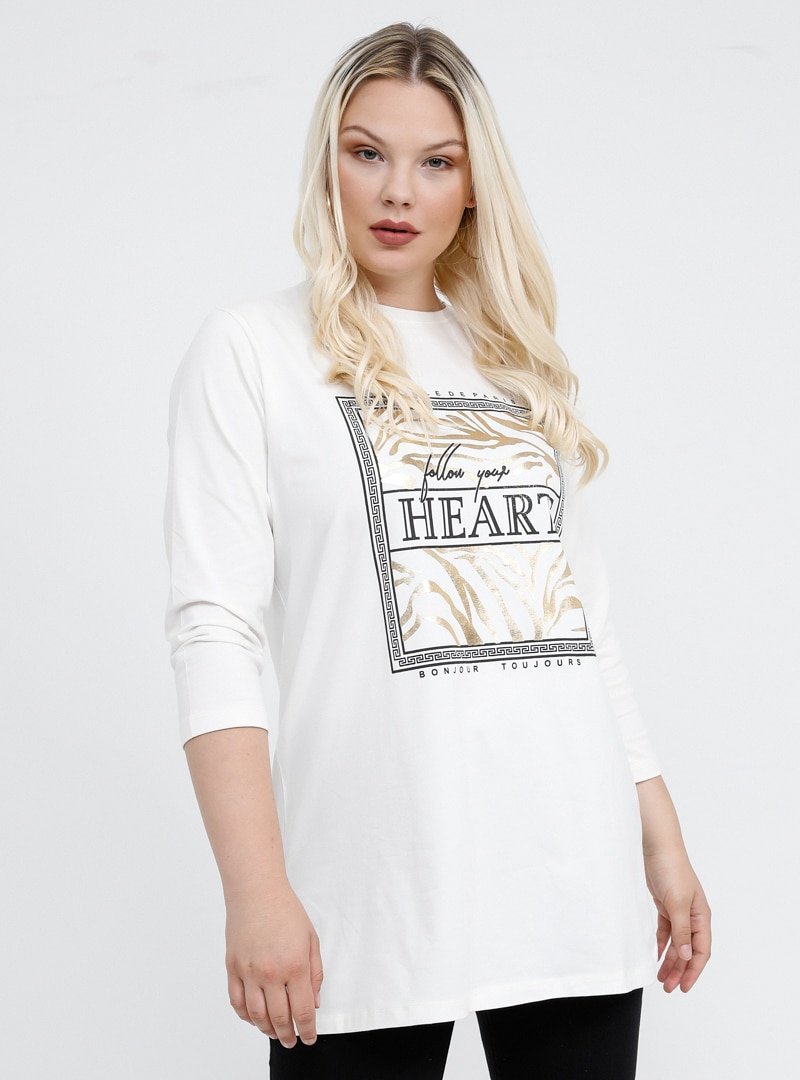 Alia Ekru Doğal Kumaşlı Baskılı Tunik