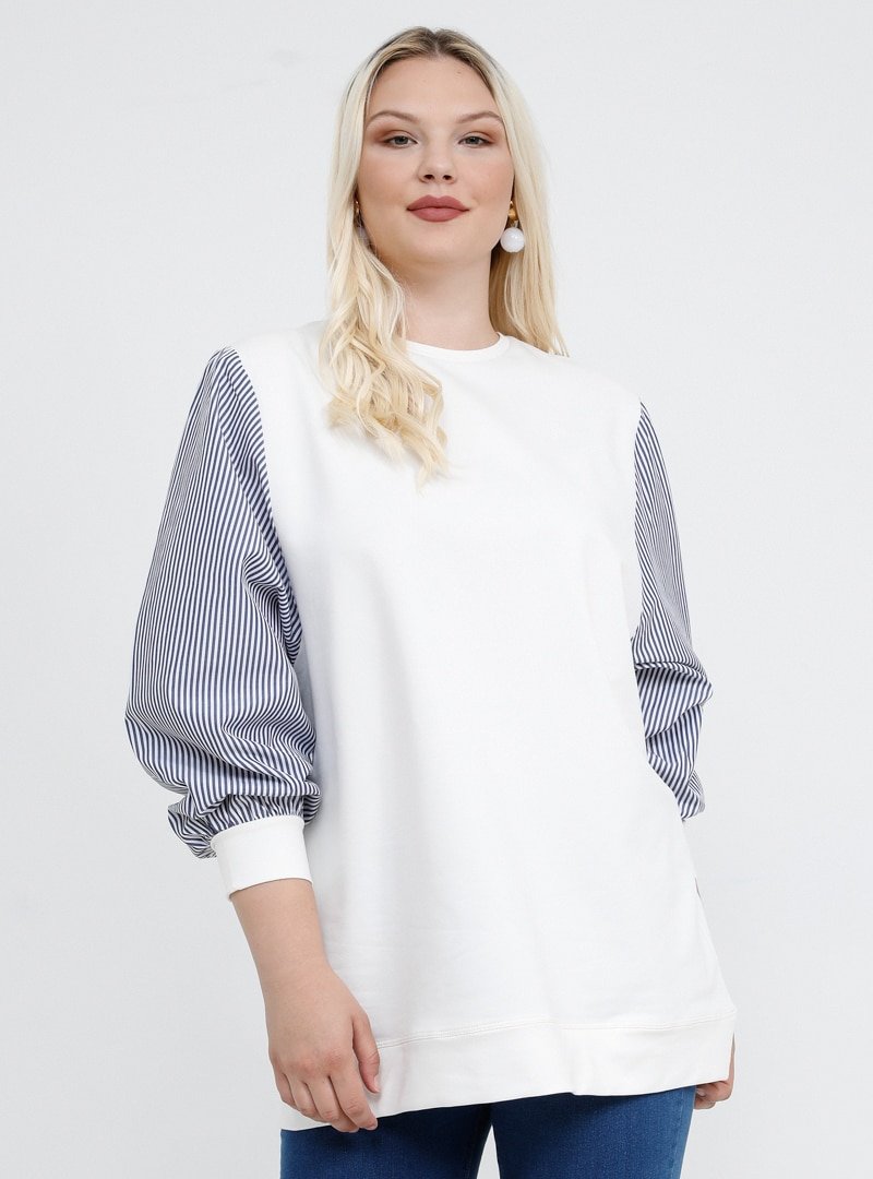 Alia Ekru Lacivert Garnili Salaş Tunik