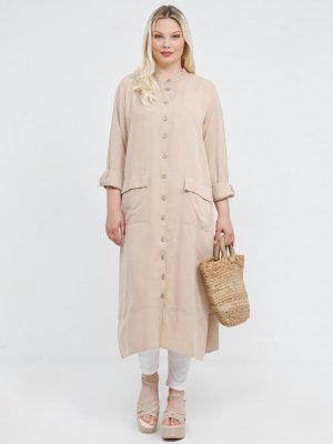 Alia Açık Camel Doğal Kumaşlı Cep Detaylı Kap