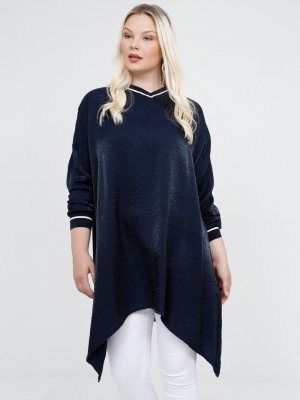 Alia Lacivert Ribana Detaylı Salaş Tunik