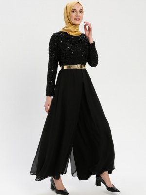 MEKSİLA Siyah Kemerli Abiye Tulum