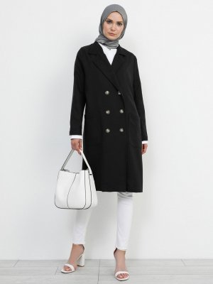 Refka Siyah Kruvaze Kesim Cep Detaylı Ceket