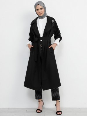 Refka Siyah Broş Detaylı Trençkot