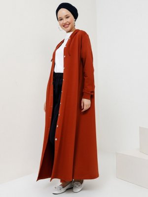 Benin Koyu Tarçın Kapüşon Detaylı Çıtçıtlı Spor Pardesü