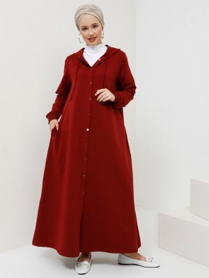 Benin Bordo Kapüşon Detaylı Çıtçıtlı Spor Pardesü