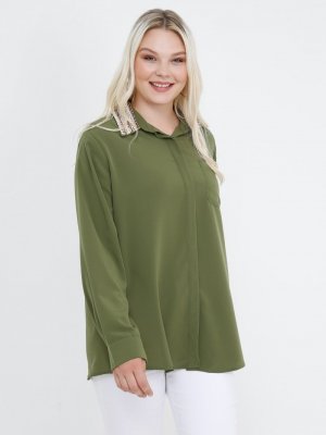 Alia Haki Yakası İncili Gizli Düğmeli Gömlek
