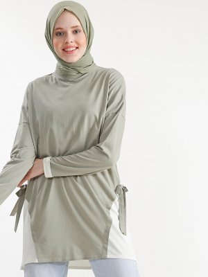 PLİSTRE Yeşil Zambak Blok Renk Detaylı Tunik