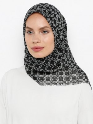 Bonjela Siyah Flamlı Koton Eşarp