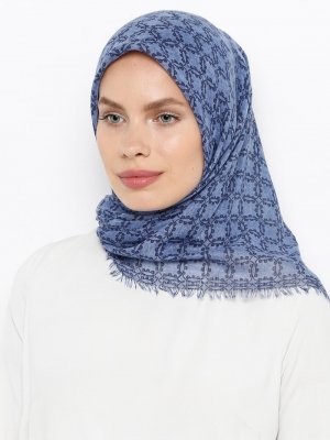 Bonjela Mavi Flamlı Koton Eşarp