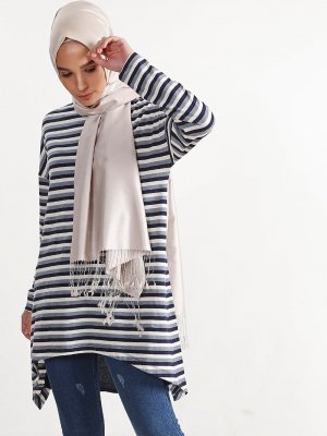 PLİSTRE Marin Şeritli Asimetrik Kesim Tunik