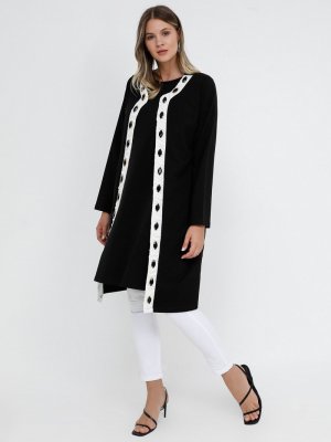 Alia Siyah Ekru Taş Detaylı Pamuklu Kap
