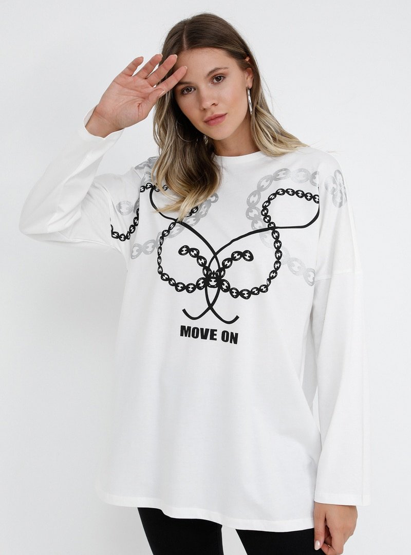 Alia Ekru Doğal Kumaşlı Baskılı Tunik