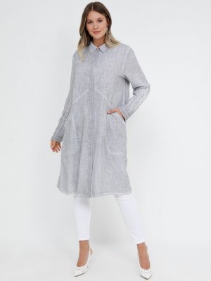 Alia Gri Doğal Kumaşlı Cep Detaylı Tunik