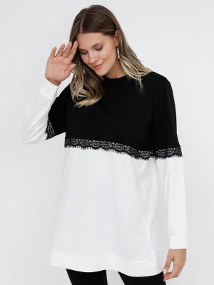 Alia Siyah Ekru Doğal Kumaşlı Dantelli Tunik