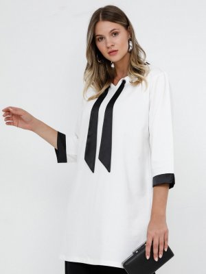 Alia Ekru Siyah Yakası Bağlamalı Tunik