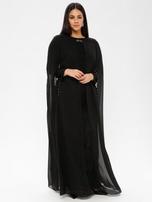 Sevdem Abiye Siyah Şifon Yelekli Dantelli Abiye Elbise