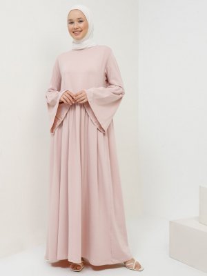 Benin Soft Pembe Doğal Kumaşlı Rahat Elbise