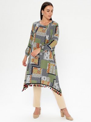 Genç Style Yeşil Püskül Detaylı Tunik