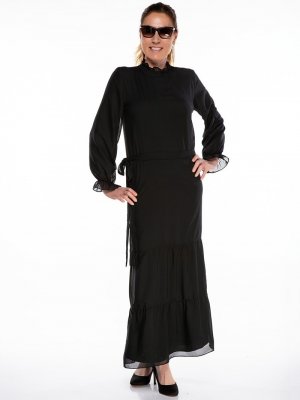 Melisita Siyah Kolu Fırfırlı Elbise