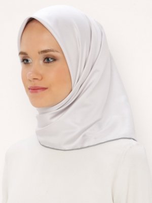 Bonjela Açık Gri Biyeli Düz Twil Eşarp