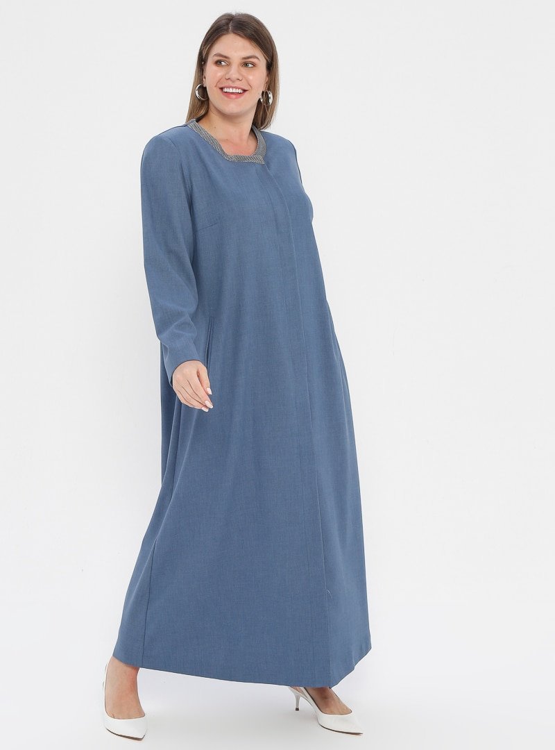 Nihan Mavi Gizli Düğmeli Pardesü
