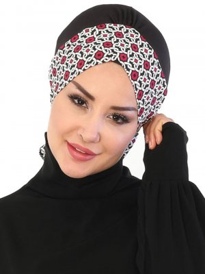 Ayşe Türban Tasarım Siyah Bordo Rahat Bone