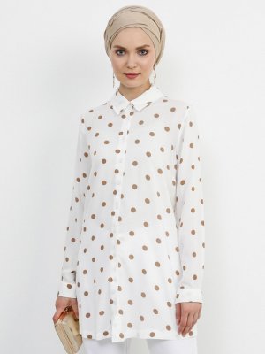 Refka Beyaz Doğal Kumaşlı Puantiyeli Gömlek