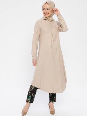 ECESUN Vizon Pile Detaylı Viskon Tunik