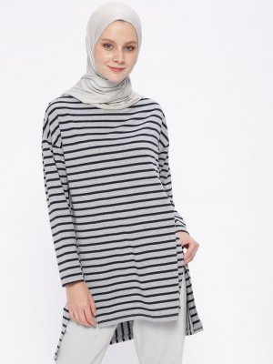 İLMEK TRİKO Gri Çizgili Tunik