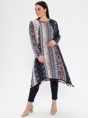 Genç Style Lacivert Püskül Detaylı Tunik