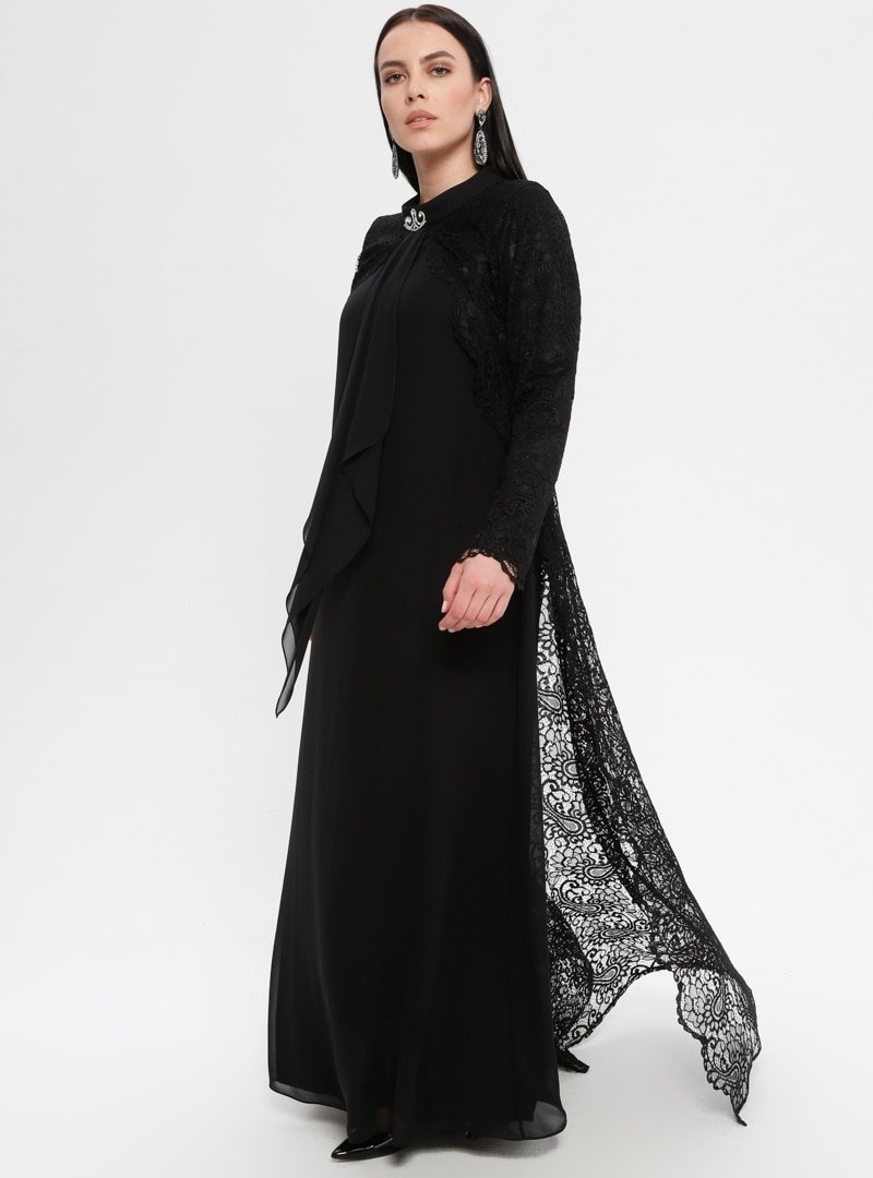 Sevdem Abiye Siyah Dantelli Abiye Elbise