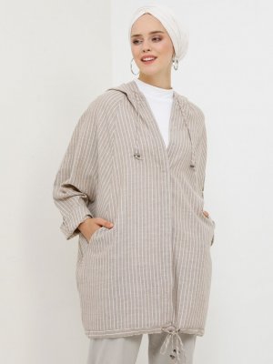 Benin Bej Kapüşonlu Gizli Düğmeli Spor Kap