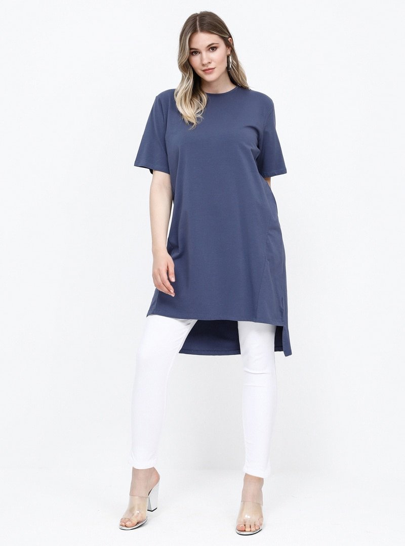 Alia Menekşe Doğal Kumaşlı Arkası Uzun Tunik