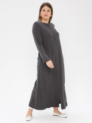 Hanımsa Antrasit Gizli Düğmeli Vatkalı Pardesü