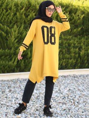 Lazeyn Hardal Baskılı Kolu Çizgili Tunik