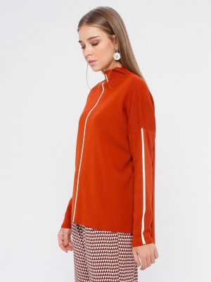 Zentoni Kiremit Ekru Kontrast Şeritli Kazak