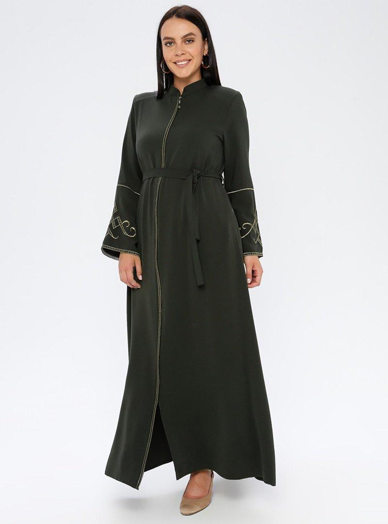 Jamila Haki Nakış Detaylı Fermuarlı Ferace