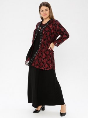 Metex Bordo Broşlu Dantelli Abiye Ceket & Elbise