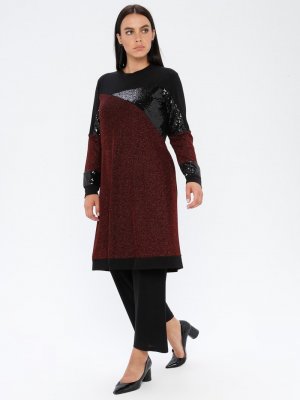 Metex Bordo Payetli Tunik & Pantolon İkili Takım