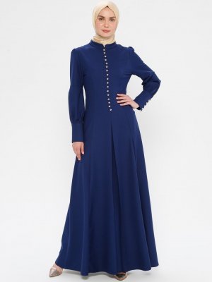 BÜRÜN İndigo Birit Detaylı Elbise
