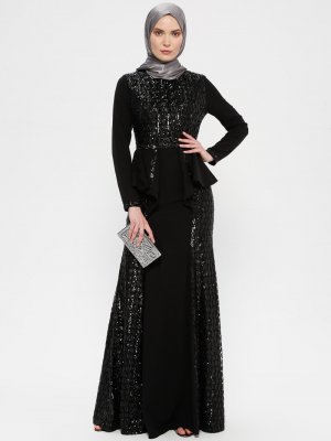 MODAYSA Siyah Payet Detaylı Abiye Elbise