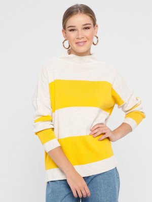Zentoni Bej Açık Hardal Çizgili Triko Kazak