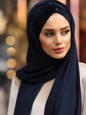 DIFFERENZA Lacivert Lüx Payet Tek Düğüm Şal