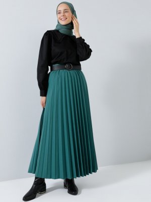 Benin Koyu Yeşil Piliseli Etek