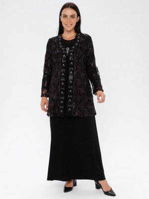 Metex Mürdüm Broşlu Dantelli Abiye Ceket & Elbise