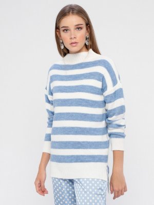 Zentoni Ekru Koyu Mavi Çizgili Triko Kazak