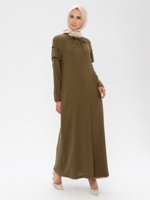 TUĞBA Haki Gizli Düğmeli Pardesü